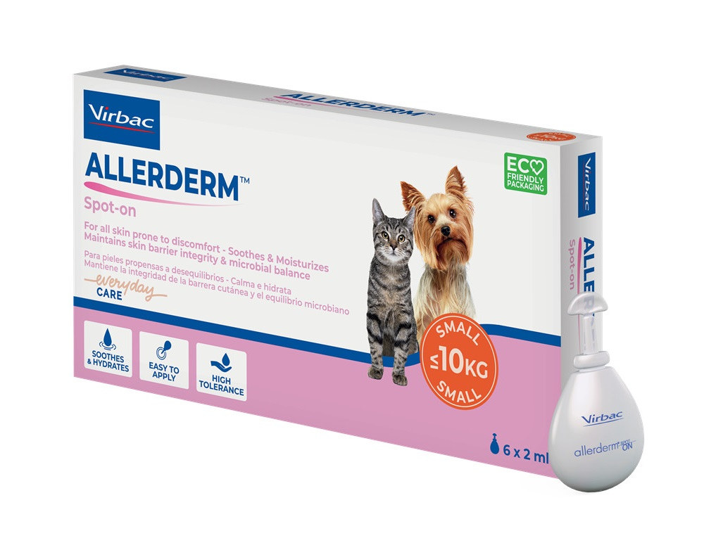 Allerderm Spot On 2 ml (< 10 kg) - 6 pipete este un produs adaptat în mod special pentru câinii și pisicile care prezintă probleme de sănătate a pielii.