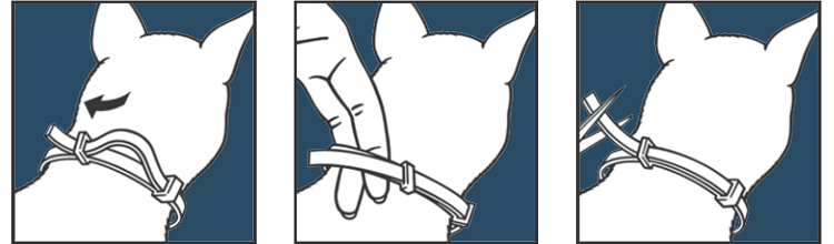 · Zgarda Foresto se scoate din punga de protecție doar înainte de utilizare. · Se desface zgarda și se verifică dacă nu au rămas resturi de plastic pe partea interioara a zgărzii. · Se fixează zgarda în jurul gâtului animalului, fără a se strânge prea tare (ca un ghid, ar trebui să fie posibilă inserarea a 2 degete între zgardă și gâtul animalului). · Se trage partea liberă prin cataramă și se taie orice lungime în exces care depășește 2 cm. · Zgarda Foresto trebuie să fie purtată în mod continuu, pe toată perioada de protecție de 8 luni și trebuie să fie îndepărtată după perioada de tratament. · Verificați periodic și ajustați zgarda dacă este necesar, mai ales atunci când pisoii/cățeii sunt în creștere rapidă. · Aceasta zgardă este proiectată cu un mecanism de închidere cu siguranță. · În cazul puțin probabil în care o pisică este prinsă, puterea proprie a pisicii este suficientă pentru a largi zgarda și pentru a permite eliberarea rapidă.