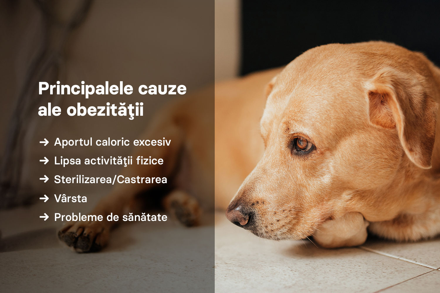 • Aportul caloric excesiv: hrana oferită peste măsură sau resturile de la masa stăpânilor sunt principalele vinovate.