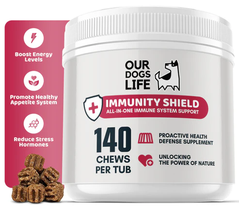 Îmbunătățiți rezistența și vitalitatea patrupedului dvs cu produsul Immunity Shield de la OurDogsLife formulat cu nutrienți puternici, oferind protecție împotriva bolilor.