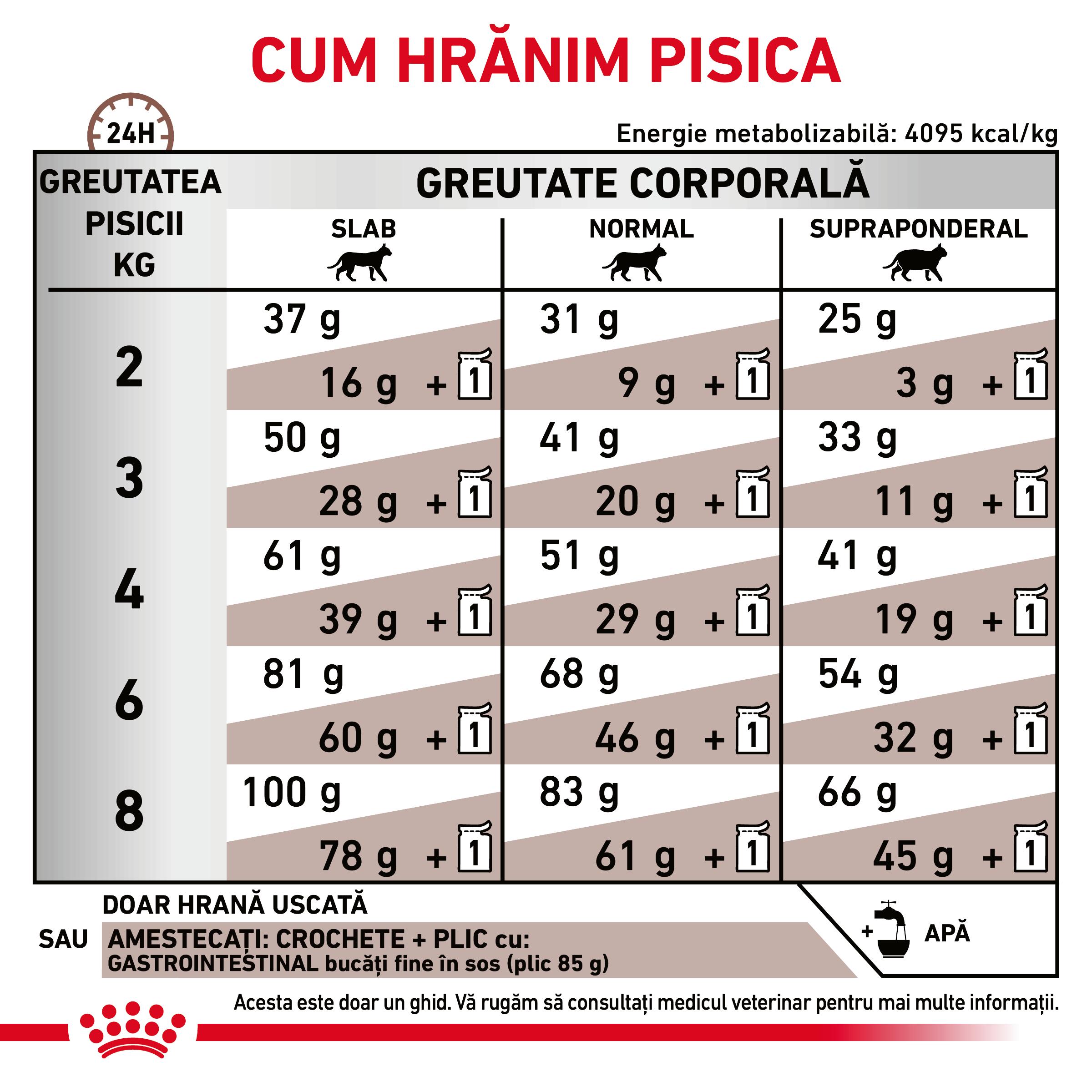 Dietă veterinară special formulată pentru a sprijini sănătatea digestivă a felinelor care suferă de tulburări gastrointestinale.