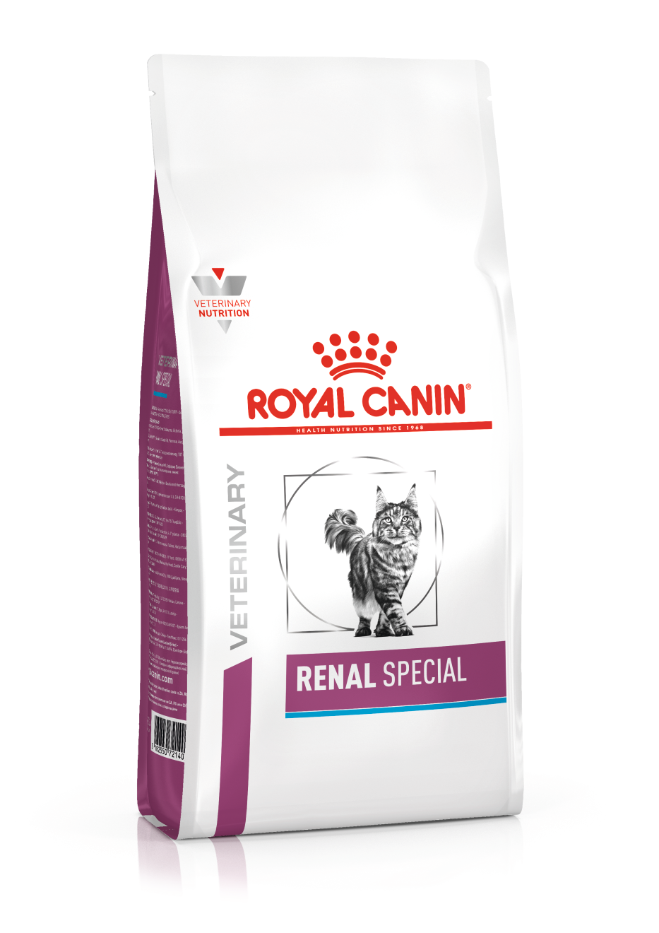 Hrana uscată Royal Canin Renal Special este o dietă completă pentru pisicile adulte, care suferă de insuficiență renală cronică, cu un conținut redus de fosfor și unul moderat de proteine.