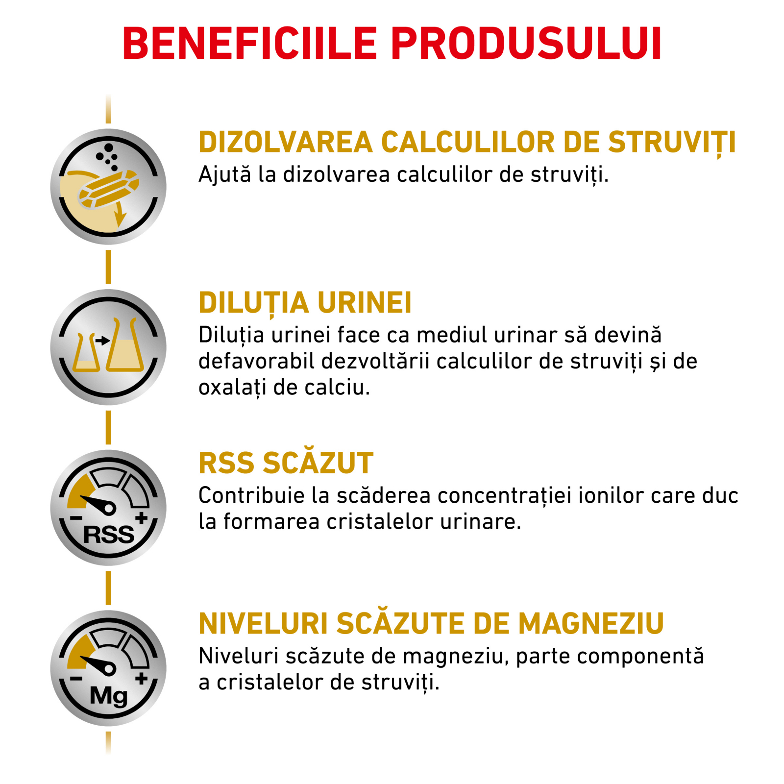 Dizolvare de struviți: Hrana contribuie la dizolvarea urolitelor de struvit.